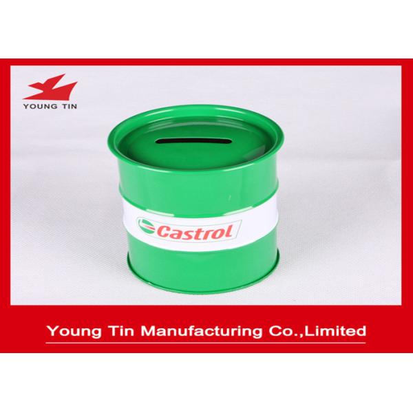 Round Cylinder Metal Tinplate Material Castrol Coin Bank Boxes